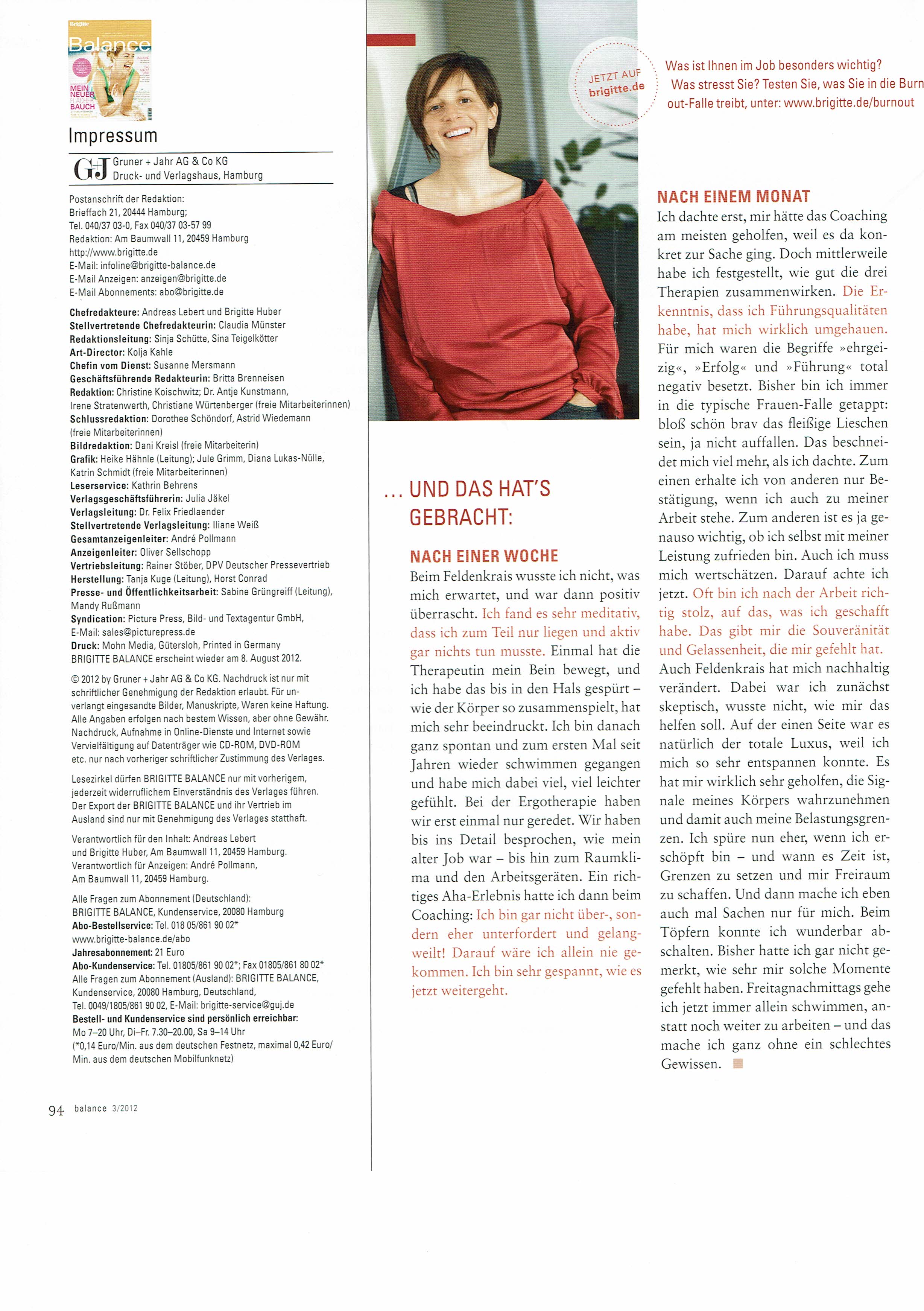 Juni 2012 · Simone Stabentheiner in einem Arbeitsprojekt mit der Zeitschrift Brigitte Balance
