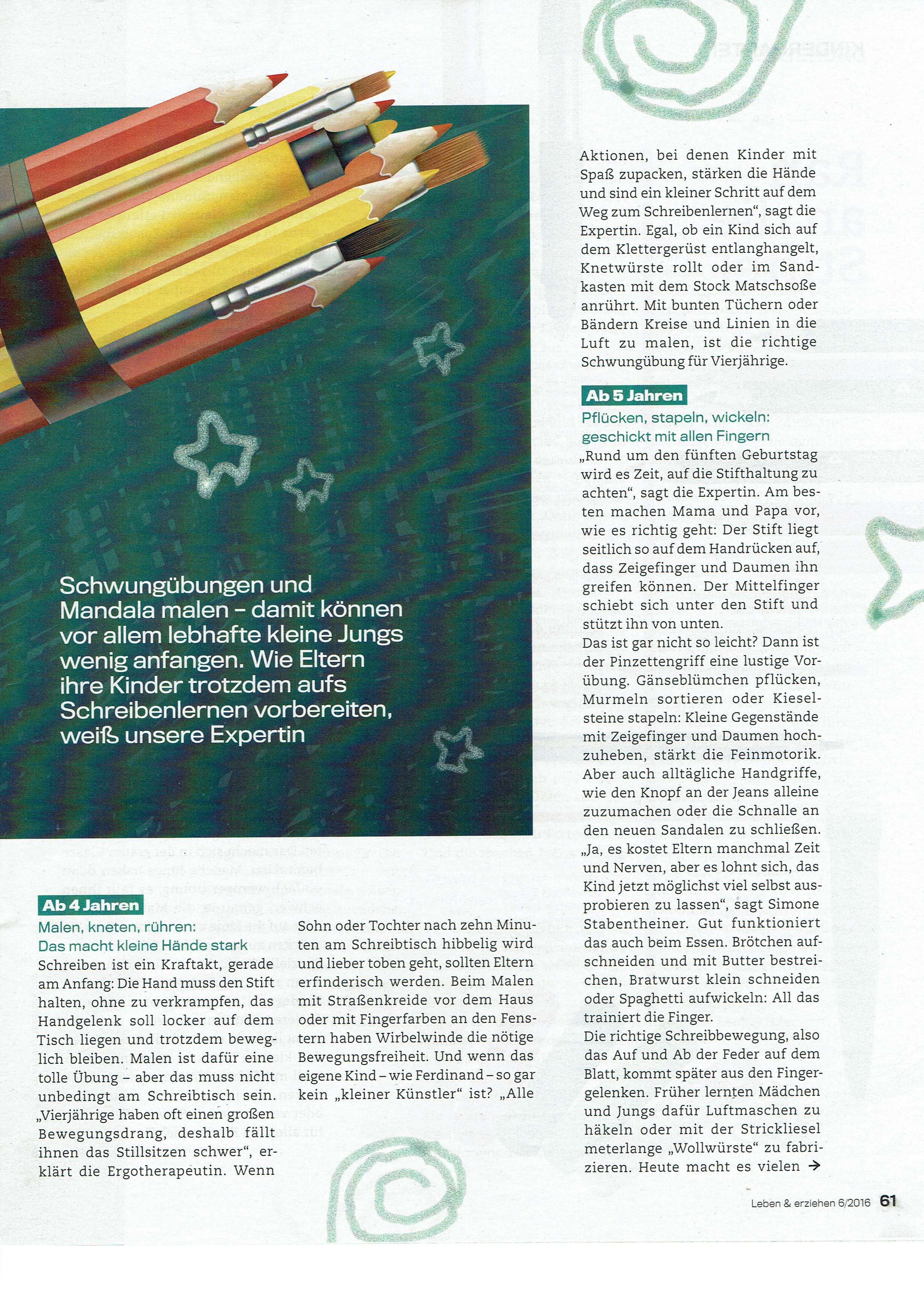 Elternzeitschrift Leben&Erziehen · „Rund um die Kinderhand“ und „Fit für die Schule“